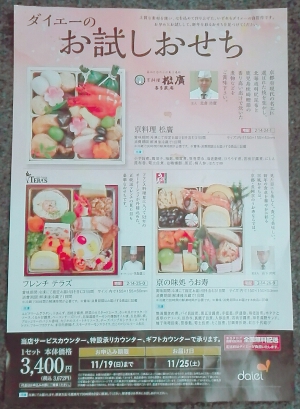ダイエーに買い物に行ったら、お試しおせちのチラシがあったので1枚もらってきました。